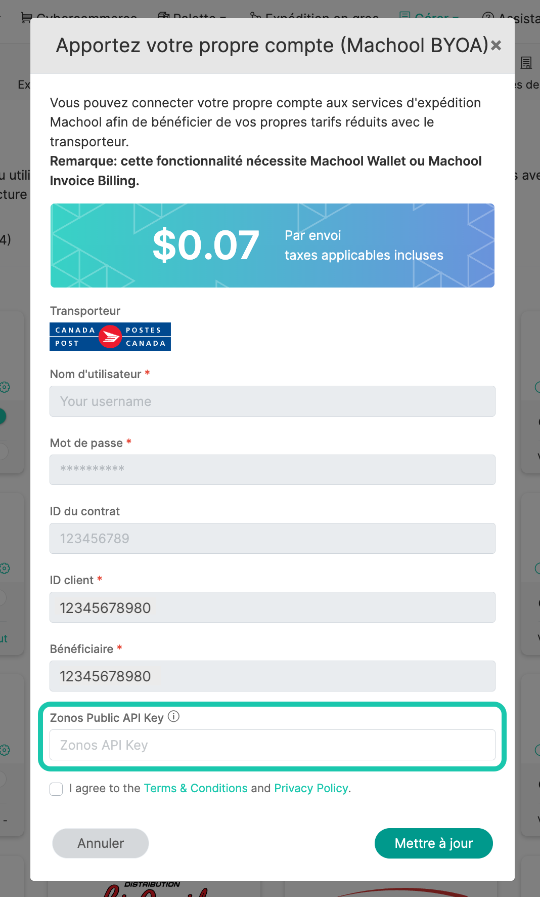 Intégration de Zonos pour les envois de Postes Canada aux États-Unis