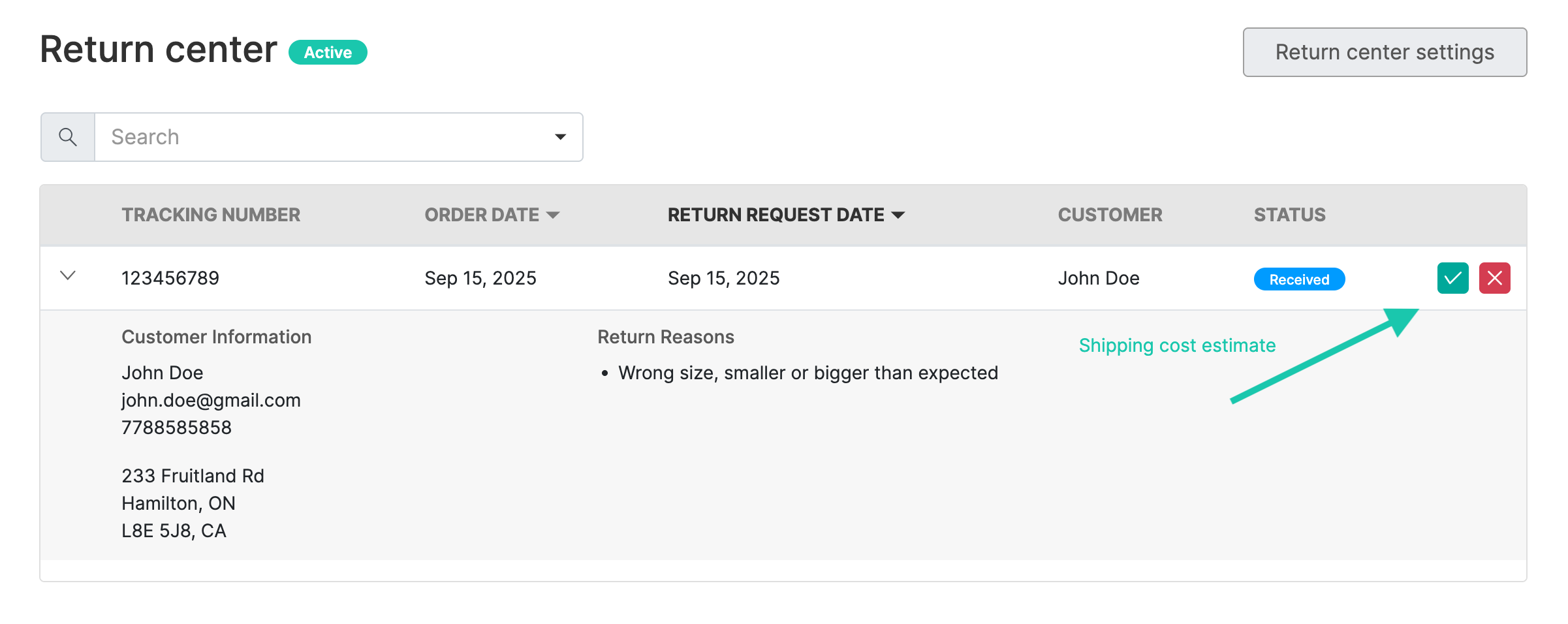 Once approved, your customers will receive a confirmation email and can download a QR code or shipping label for their return.